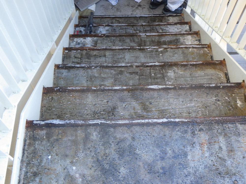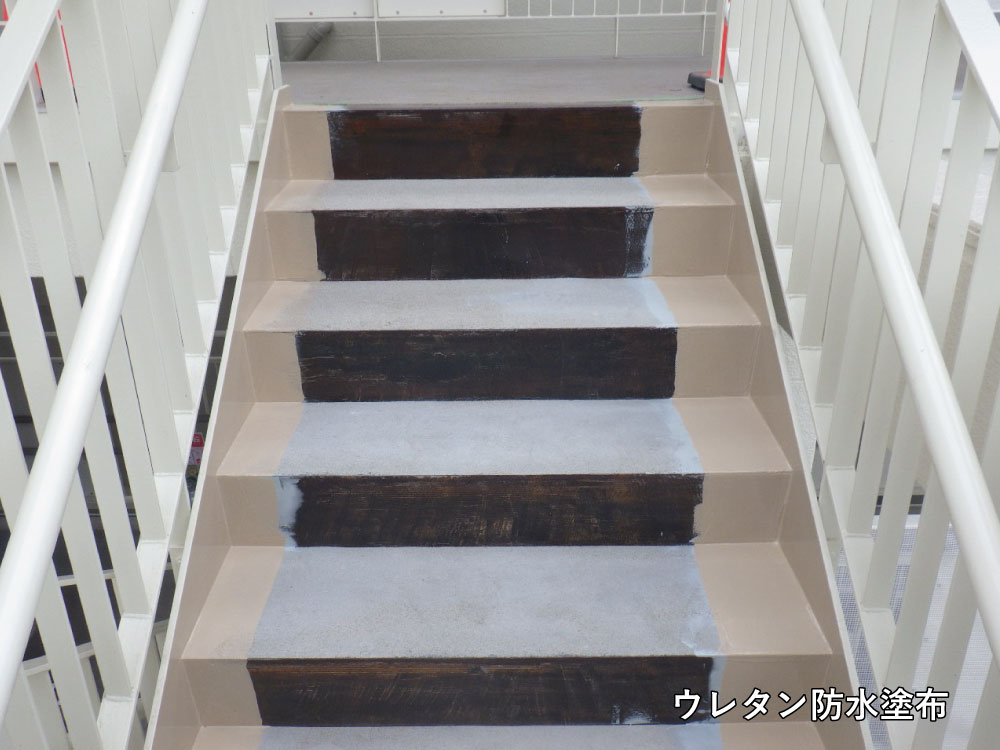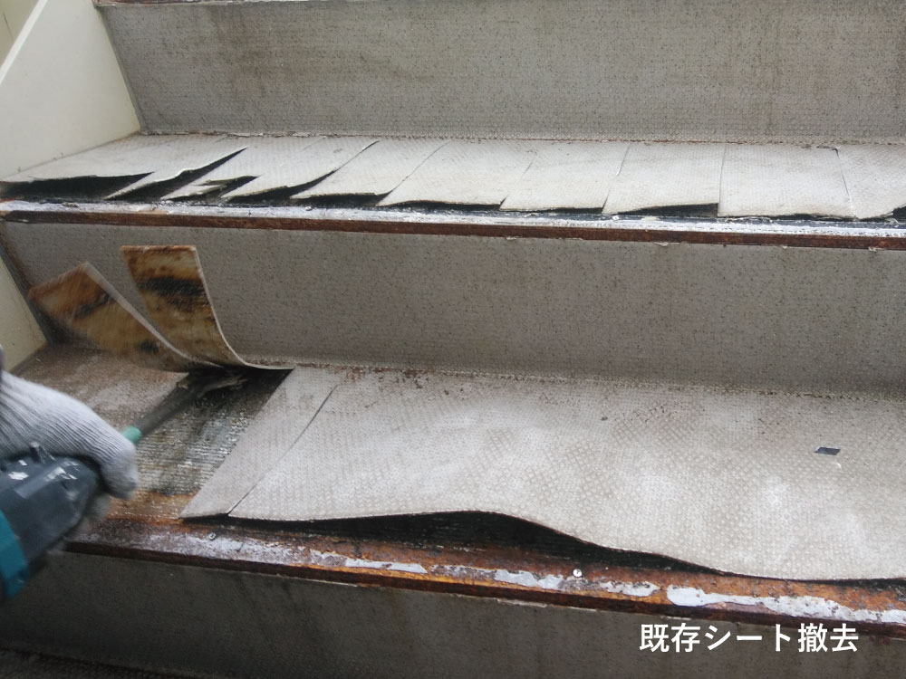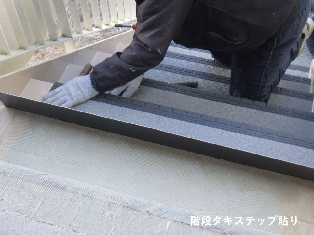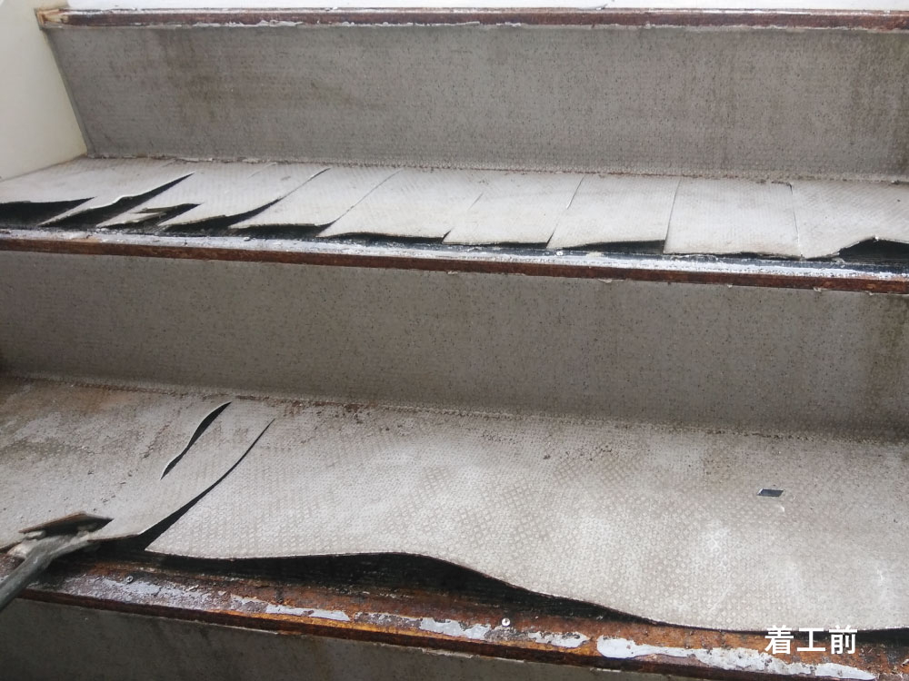 リフォーム 老人ホーム非常外階段工事 劣化によりシートがめくれ上がり、雨の日には滑りやすいなど危険が伴っていました。耐久性、滑り止め効果に優れたタキストロンの施工とともに防水工事もおこない安心して階段を使用できるようになりました。 一覧に戻る